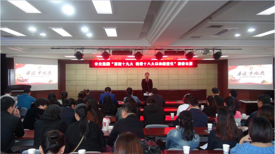 为迎接党的十九大胜利召开,10月20日下午,公交集团在六楼会议室举办了"喜迎十九大 我看十八大以来新变化"演讲比赛。来自集团各党支部的15名选手结合公司变化、自身经历、所见所感等畅谈十八大以来翻天覆地的新变化和取得的新成就。表达自身对迎接十九大胜利召开的强大自信心和强烈自豪感。演讲比赛现场气氛热烈,选手们发挥出色,讲出了气势,讲出了感情,展现全体党员干部职工立足本职创先争优的决心和奋发向上的精神风貌,为迎接党的十九大胜利召开营造风正劲足、奋发有为、干事创业的良好氛围。