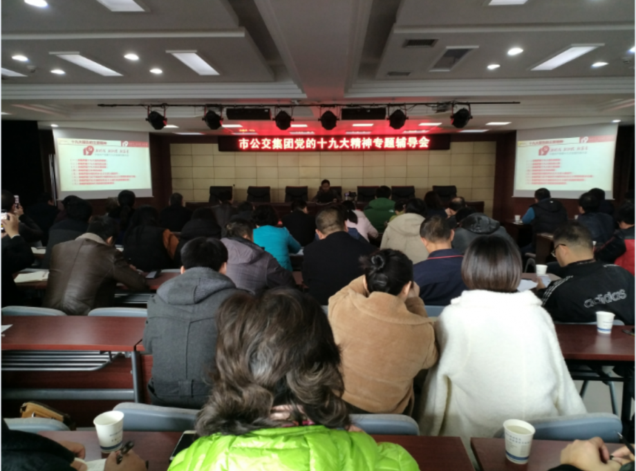 11月24日下午,公司在集团六楼会议室召开十九大精神专题辅导会。公司党委班子成员、机关正副部长、二级单位班子成员、各党支部党员代表共100余人参加了会议。