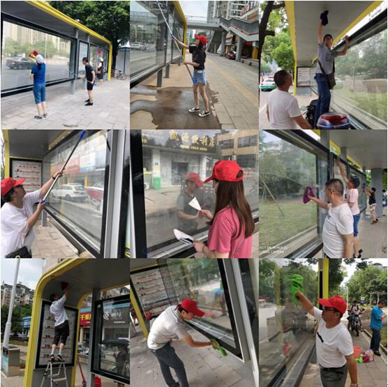 7月6日上午,公交集团组织全体机关管理人员对湖滨大道沿线的24个公交站点开展"扮靓公交站台"行动。虽然天气炎热,但大家干劲十足,早早携带工具来到各自包保站点,团结协作、奋勇争先,发扬不怕苦、不怕累的精神,拿着抹布擦拭站牌上的污垢,抄起铲子铲除橱窗上的小广告,并对站台卫生进行彻底清理。经过大家一个上午的共同努力,公交站台的卫生面貌焕然一新。