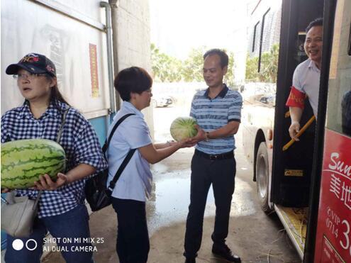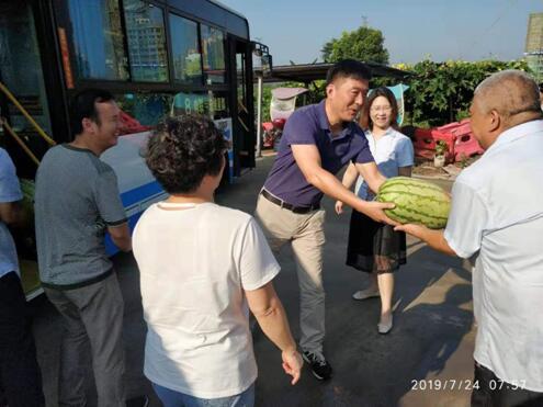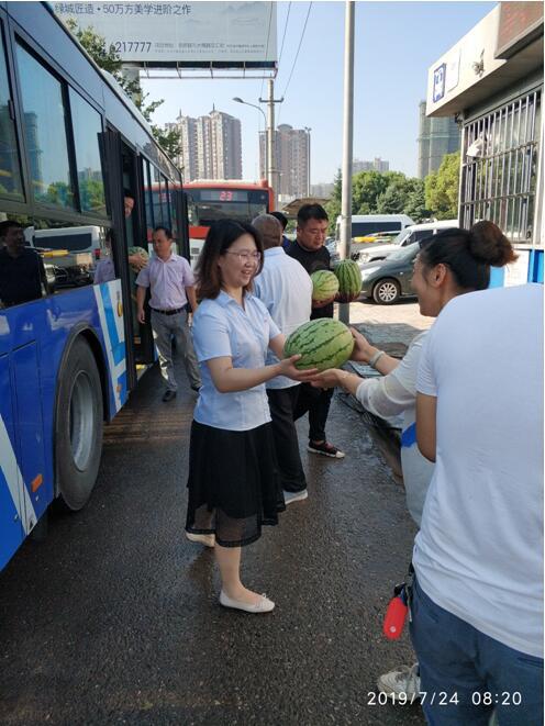 7月24日上午,公司领导班子兵分三路,带领机关以及营运分公司管理人员,深入一线各站点、修理车间以及施工工地等地方,展开“夏季送清凉”慰问活动,为一线员工送去了近8000斤西瓜,为在炎炎夏日仍坚守在工作岗位上的一线员工送去一丝清凉。慰问活动中,公司领导与一线员工亲切交谈,对他们不畏高温、坚守岗位的精神表示感谢,同时叮嘱驾驶员在高温天气中注意行车安全和身体健康。