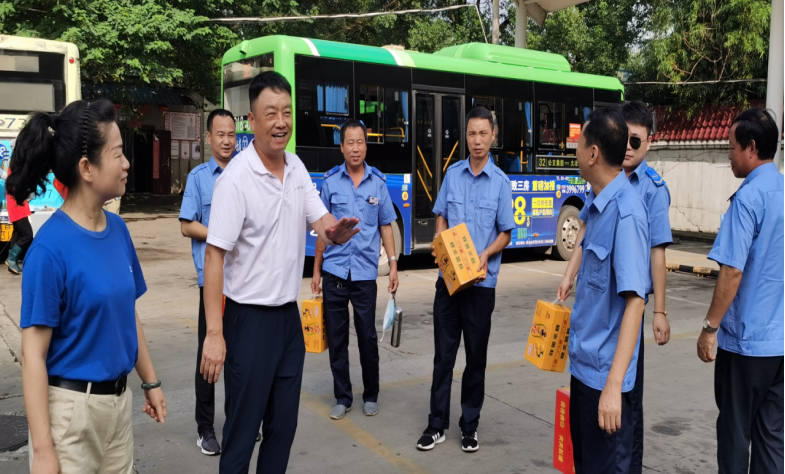 8月 26日上午,市总工会调研员范雁冰一行莅临公交集团慰问一线职工,在炎炎夏日中送来了一份清凉和关怀。慰问组对公交人不畏高温、坚守一线的奉献精神和为市民安全出行、文明城市创建、疫情防控等工作作出的突出贡献给予了高度赞扬。叮嘱大家注意高温防暑,保重身体。要求公交集团做好、做细、做实防暑降温工作,确保一线职工生产安全和身体健康。