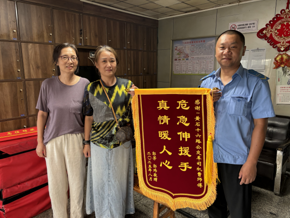 据了解,老人晚上从青山湖养老院偷溜出来,迷迷糊糊到了新百百货车站,上了16路公交车,幸亏被曹师傅及时发现并带回调度室,联系上了家属。30日上午,老人的两个女儿将一面锦旗送到车队表示谢意!