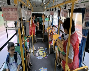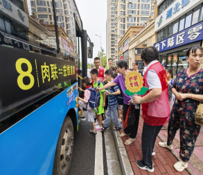 9月1日早6:00起,各条护学专线车辆陆续停至接站点,迎接同学们的到来。每台通学专线车上都选派了2-4名党员志愿者担任乘务安全员,进行现场秩序维护和跟车服务,从“家门口”到“校门口”全程护送;同时在各中、小学门口,车流量大的公交站点或路口安排了人员参与交通疏通和路口值守,引导车辆规范停靠、有序通行和学生安全通过路口及斑马线,营造安全畅通的公共交通环境。