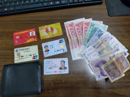 经过线管员查看,发现钱包里有500多元现金、身份证、拥军卡、社保卡及银行卡等物品。