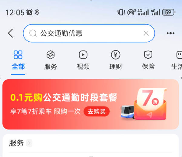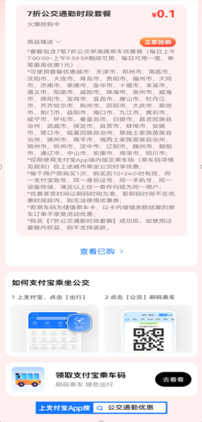 2. 搜索购:支付宝首页搜"公交通勤优惠"