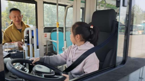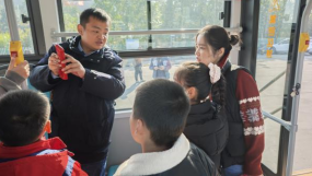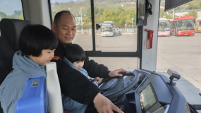 “沉浸式”体验,责任入心间。“这是方向盘,当你握住方向盘,车上乘客的生命安全可都在你‘手’上啦,千万不能分心哦!”驾驶员张强一边说着,一边手把手教儿子认识车辆部件。在“亲子工作体验”环节,孩子们兴奋不已,积极参与其中。有的孩子坐上驾驶座感受“掌控方向”的责任;有的学习如何检查车门开关;还有的模拟 “引导乘客有序上车”。“请大家有序上车”稚嫩的声音,认真可爱的模样,引得现场阵阵欢笑。通过这种亲身体验,孩子们对父母的工作有了更深刻的认识,责任意识也在他们心中悄然萌芽。