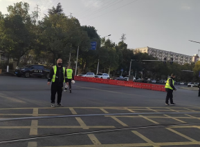 在赛道周边临时公交停靠站点和有轨电车沿线重点路口、车站,安排了大量志愿者。他们引导乘客有序上下车、提供线路咨询,协助维护站点秩序,成为赛道旁一道亮丽的风景线。严格执行交通管制要求,在杭州西路、颐阳路等16个点位进行防护隔离,并张贴清晰的标识标牌200张,确保交通秩序井然。